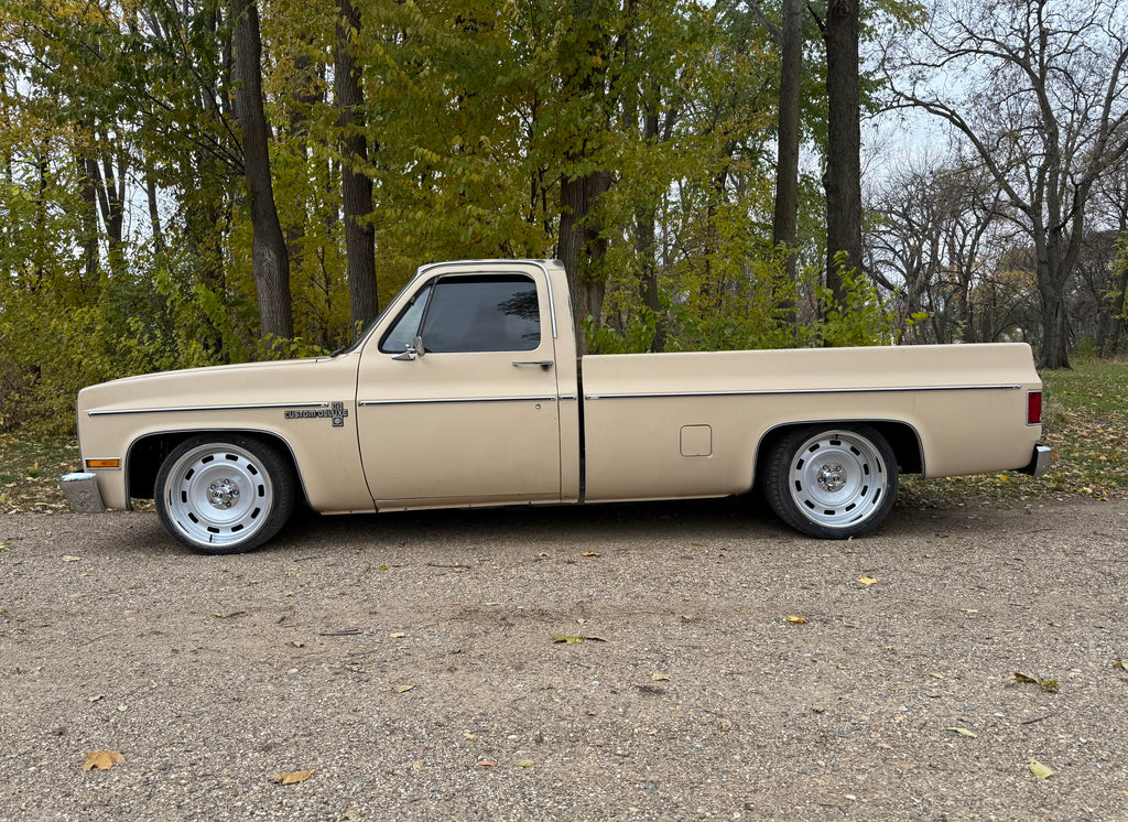 Sitting low and clean with a 3" front drop coil kit, 2.5" drop spindles, and 2" rear lowering blocks for a perfect street stance. Finished in its original classic beige with polished wheels for a timeless look that pairs vintage style with modern performance.